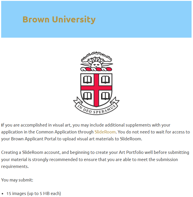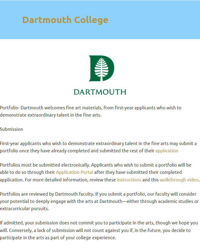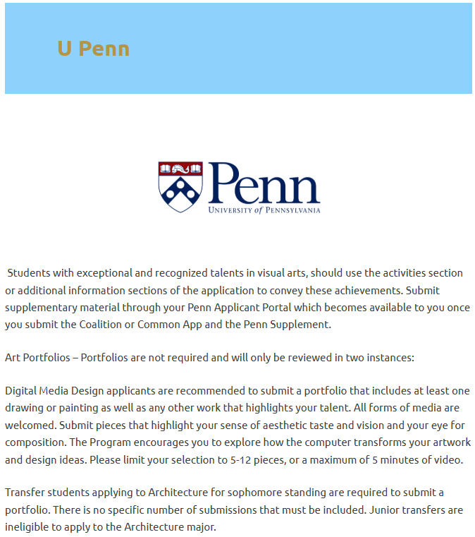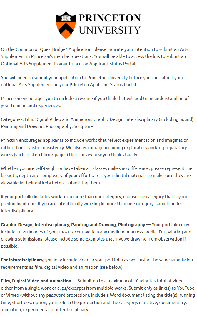 包括 哈佛、耶鲁、普林斯顿、哥伦比亚、达特茅斯、布朗、麻省理工、斯坦福和芝加哥大学 等大学都有支持艺术补充材料的渠道,但要求各有不同。